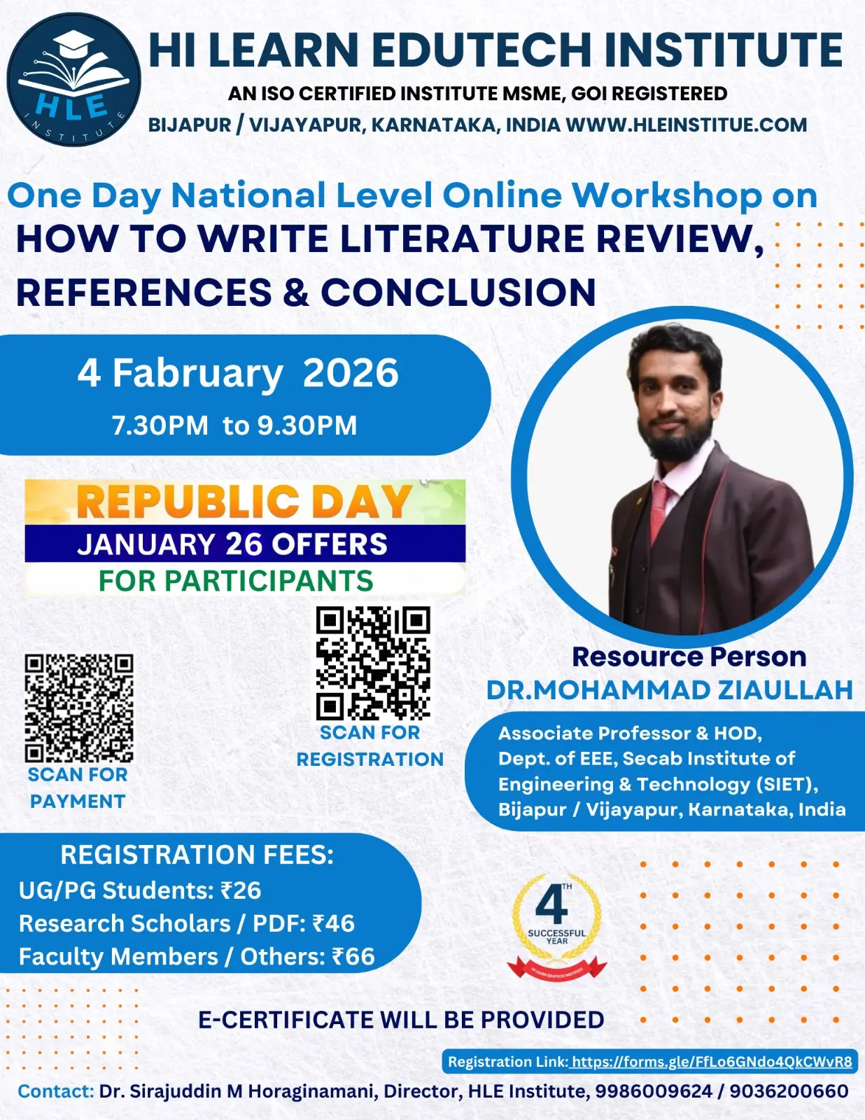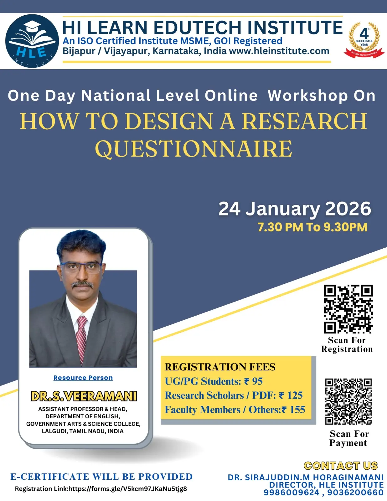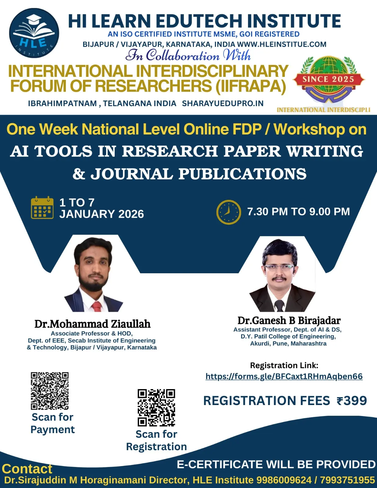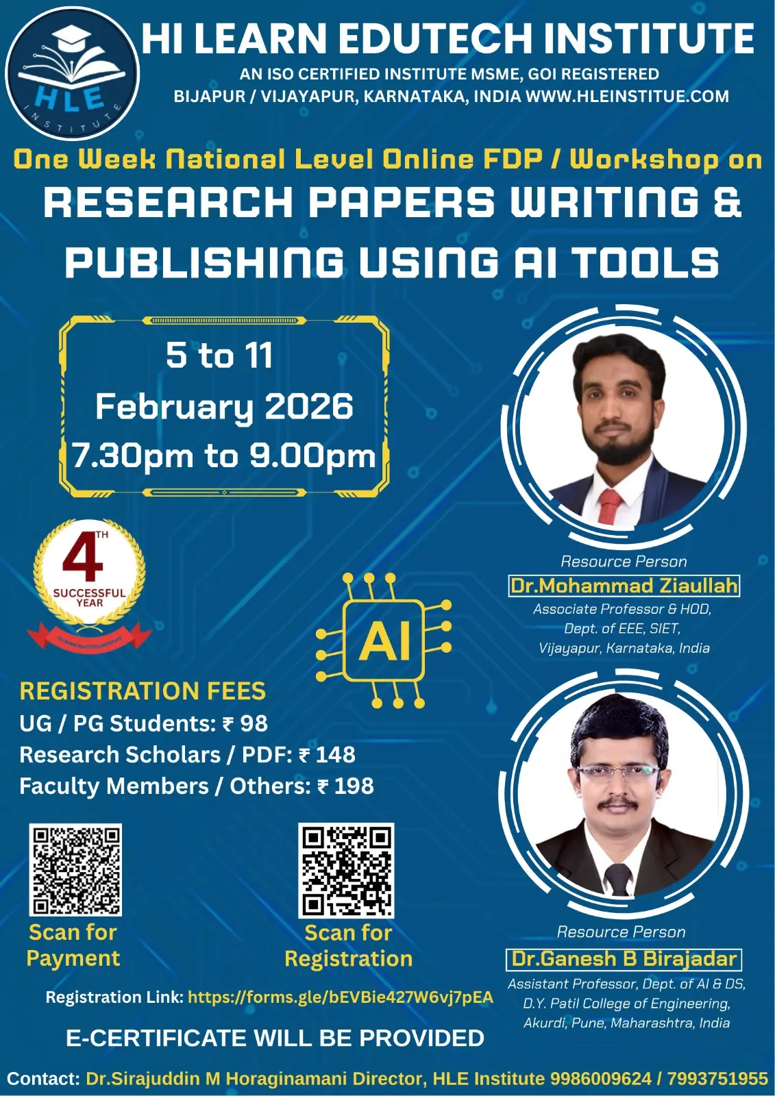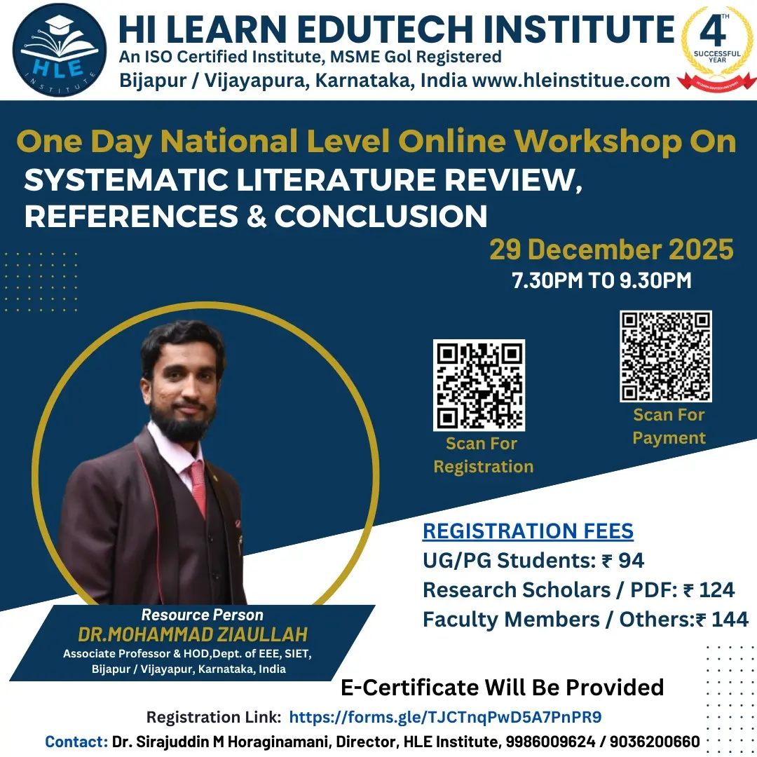 Hi Learn Edutech Institute (HLEI), based in Bijapur/Vijayapur, Karnataka, India, has been actively contributing to education and skill development since 2022. We specialize in delivering high-quality online and offline programs including workshops, FDPs, STPs, SDPs, webinars, and e-conferences. With over 100 successful online events conducted, we are committed to empowering students, researchers, and professionals.